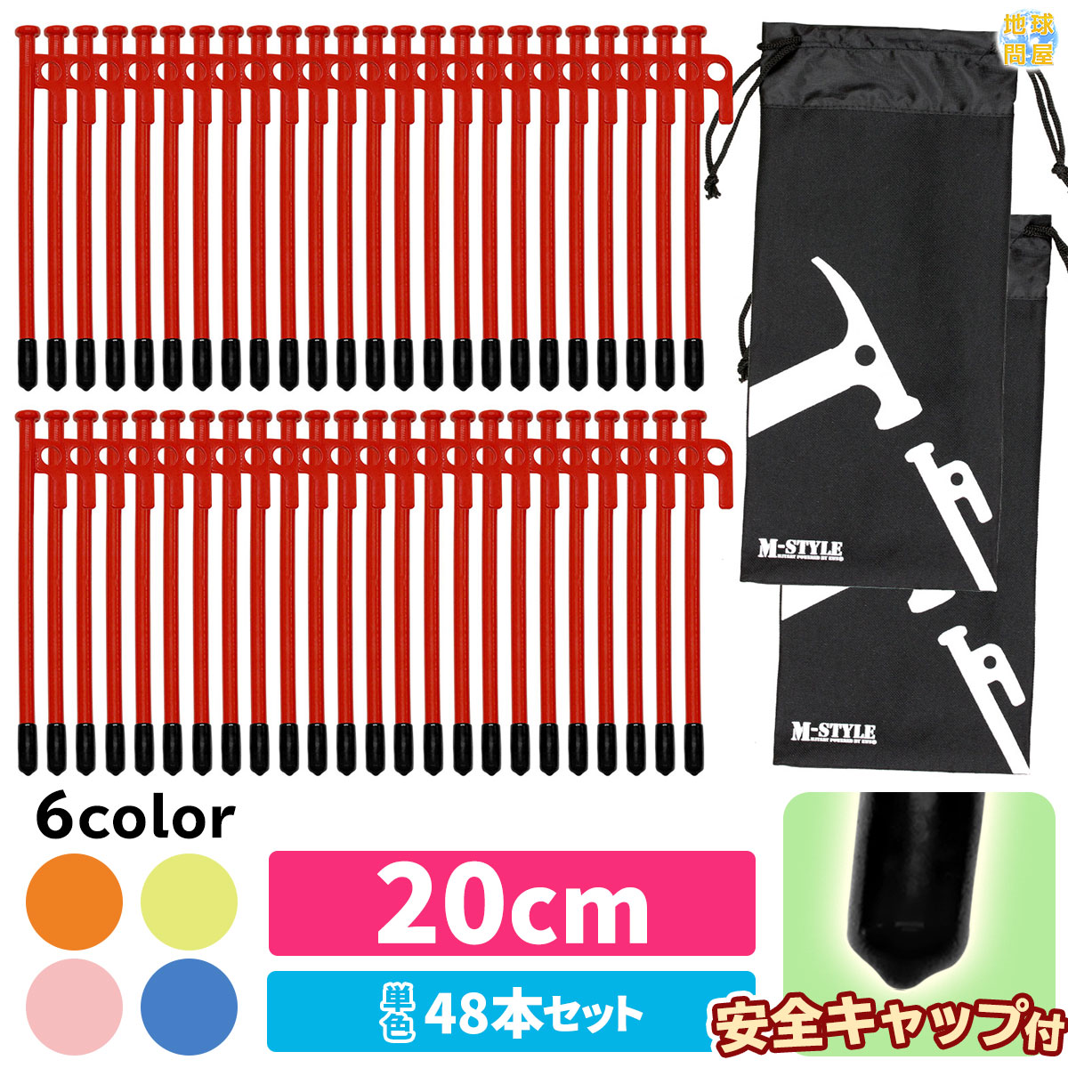 ペグ 20cm 強靭 スチールペグ キャンプ テント タープ 設営 レーザー溶接 伸線加工 防錆塗装 安全キャップ付き 48本セット