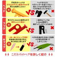 また、色付きペグはカラー塗装により視認性が良いため帰宅時のペグの抜き忘れなどの防止にもなります。