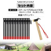 ペグ 20cm 16本 ペグハンマー 真鍮ヘッド セット 《選べるペグカラー6色》 強靭 キャンプ テント タープ 設営 アウトドア 真鍮 ハンマー