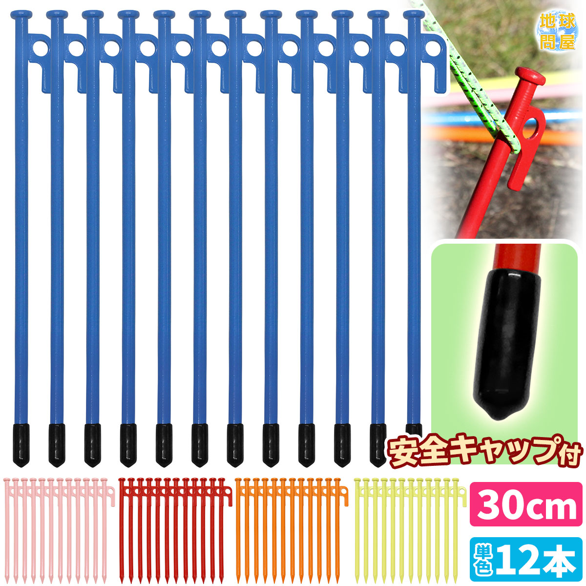 ペグ 30cm 強靭 スチールペグ キャンプ テント タープ 設営 レーザー溶接 伸線加工 防錆塗装 安全キャップ付き 12本セット