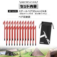 ペグ 30cm 24本 収納袋 セット 《選べるペグカラー6色》 強靭 キャンプ テント タープ 設営 アウトドア スチール