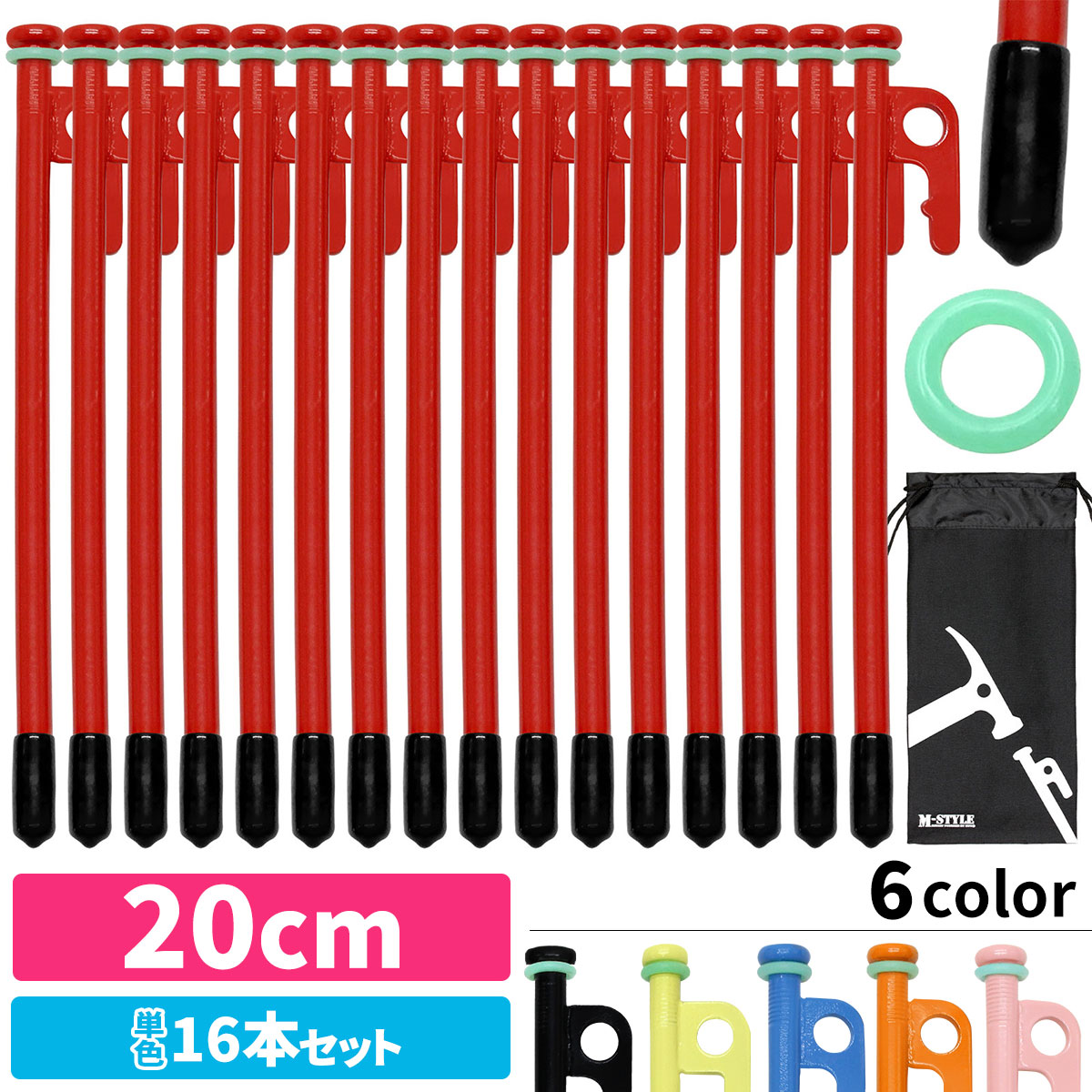 ペグ 20cm 16本セット 強靭 スチールペグ キャンプ テント タープ 設営 レーザー溶接 伸線加工 防錆塗装 安全キャップ 蛍光リング付き