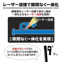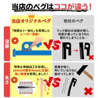 フック部分をレーザー溶接して、隙間なく一体化しました。何度か使っていると取れてしまうという心配もありません。さらに特殊な伸線加工で10mmの鉄を9mmに圧縮して高い強度を実現しました。密度が低くペグが曲がってしまうという心配もございません。また、色付きペグはカラー塗装により視認性が良いため帰宅時のペグの抜き忘れなどの防止にもなります。