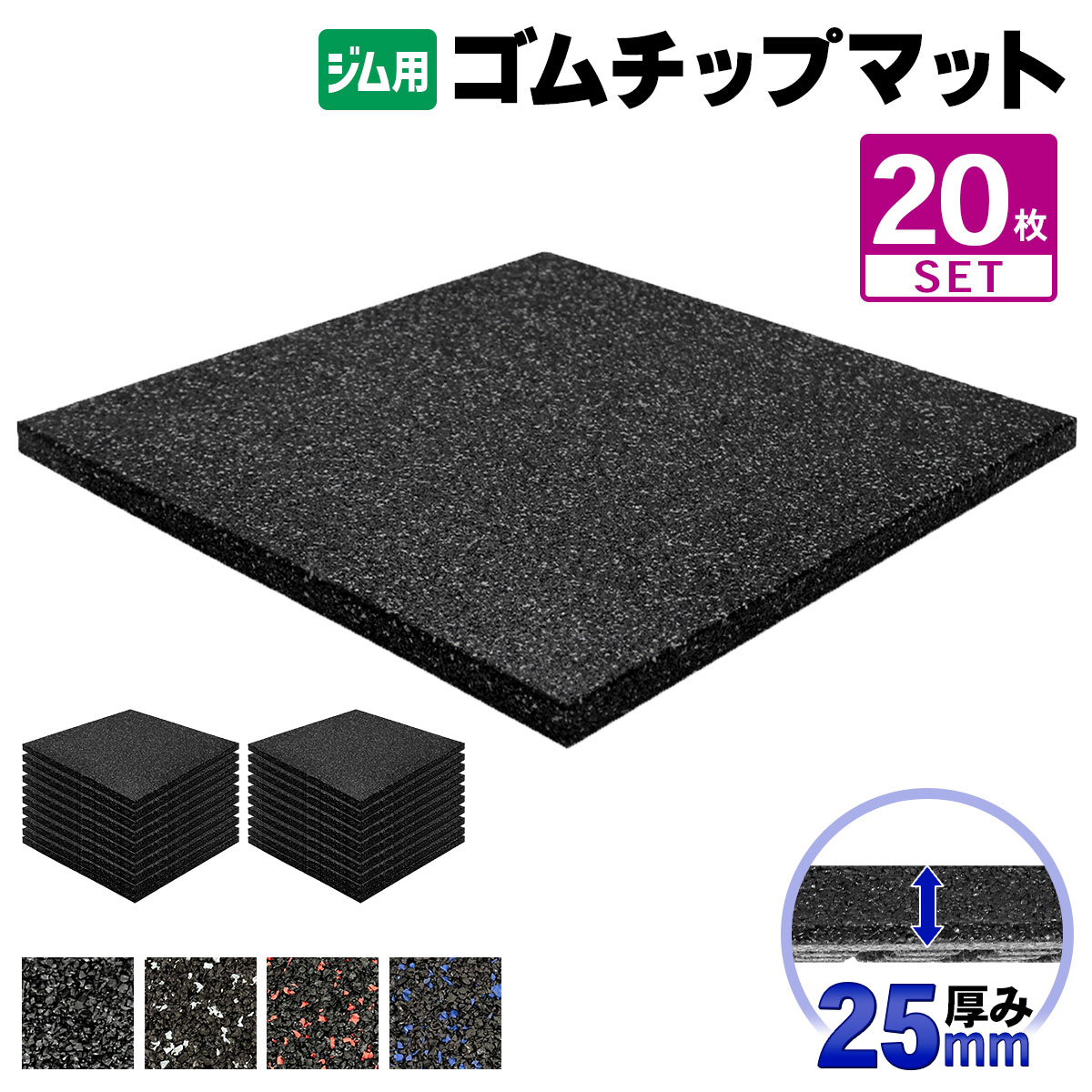 ゴムチップマット ジム マット 25mm ゴム フロアマット 防音 衝撃吸収 筋トレ トレーニングマット ラバーマット 重量器具 ダンベル 50×50cm 20枚セット
