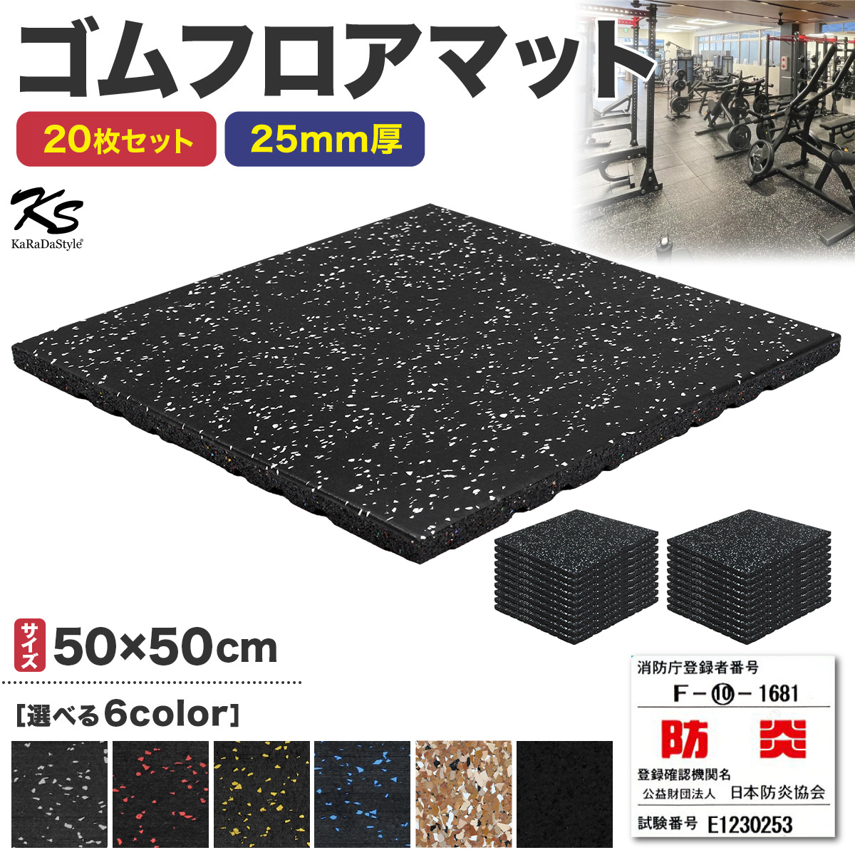 ゴムマット ジムマット 25mm 防音 防振 床 ホームジム 筋トレ マット ダンベルマット トレーニングマット ジム フロアマット 衝撃吸収 50角 20枚セット