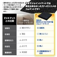 【ゴムチップ圧縮材とEPDMゴムシート】2重構造の極厚マットだから、一般的なジョイントマットに比べて、傷つき防止や防音性などあらゆる面で優れております。さらに表面のゴムシートは耐水性・耐熱性・耐寒性に優れており、汗や水を簡単に拭き取れます。