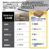 【ゴムチップ圧縮材とEPDMゴムシート】2重構造の極厚マットだから、一般的なジョイントマットに比べて、傷つき防止や防音性などあらゆる面で優れております。さらに表面のゴムシートは耐水性・耐熱性・耐寒性に優れており、汗や水を簡単に拭き取れます。
