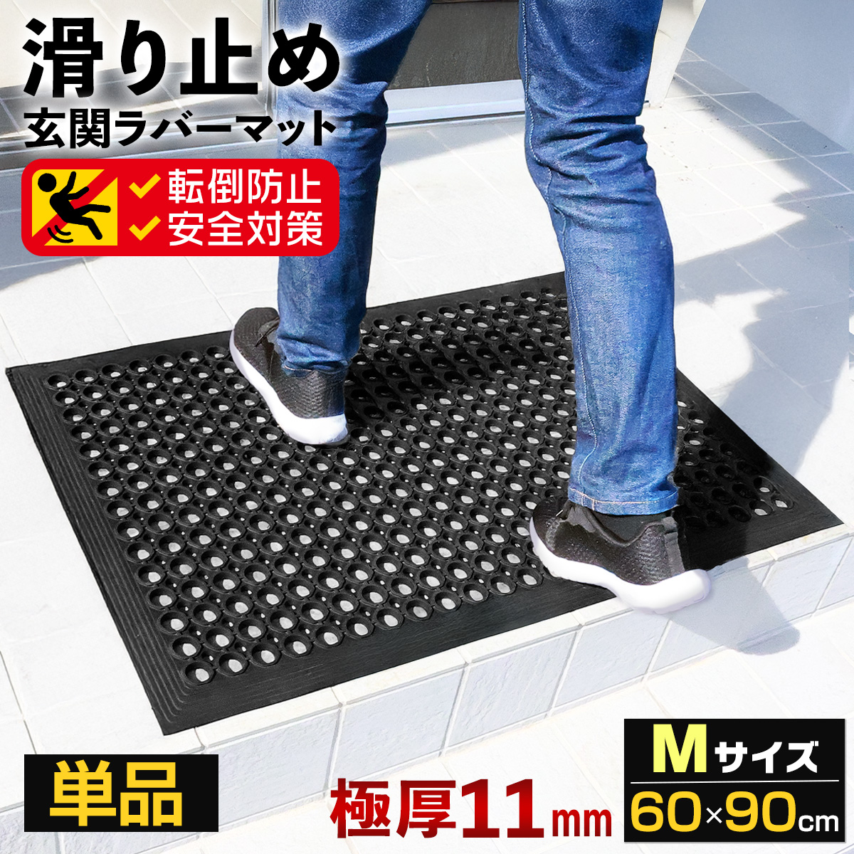 滑り止めマット 屋外 60×90cm 玄関 すべり止め 傾斜付き 転倒防止 ラバー ゴム ドアマット 段差 浴槽 介護 施設 歩行 雪道 ゴルフ場 病院 学校 (Mサイズ/単品)