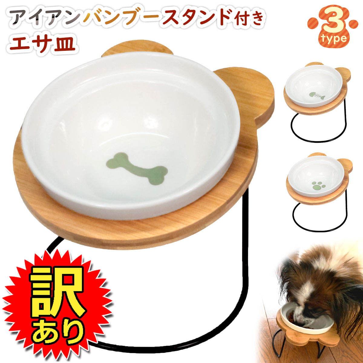 【訳あり】 エサ皿 フードボウル 犬 猫 陶器 食器台 アイアンバンブースタンド シングル