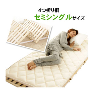 【特 徴】桐製スノコで布団やマットレスの熱気や湿気を逃し、快適。コンパクトな四つ折りで収納や持ち運び楽々。