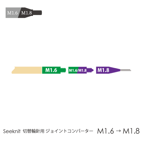 この商品を使用すると【M1.6】の針先に【M1.8】のコードを繋ぐことが可能になります。