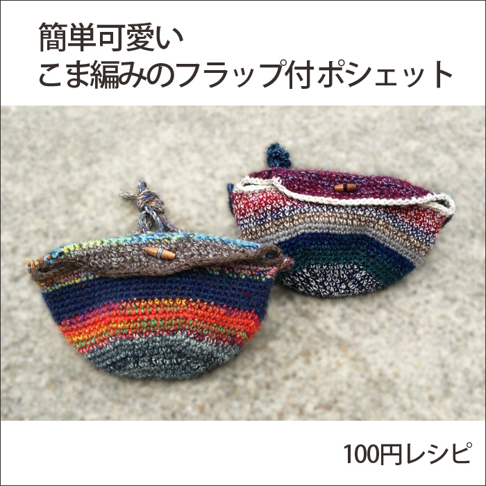 4ply毛糸2本取りで編む、かんたん・かわいいポシェットです。