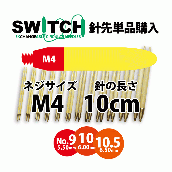 Seeknit Shirotake 切替輪針用針先 10cm M4 2本1組≪海外サイズ≫[US10/6.00mm〜US10.50/6.50mm]