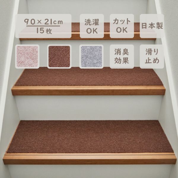 吸着マット ピタロ 90×21cm 15枚 階段 滑り止め マット 幅広 大判 洗濯 丸洗いOK 消臭効果 カットOK 日本製 犬 猫 キャット タワーステップ ペット用 転倒防止