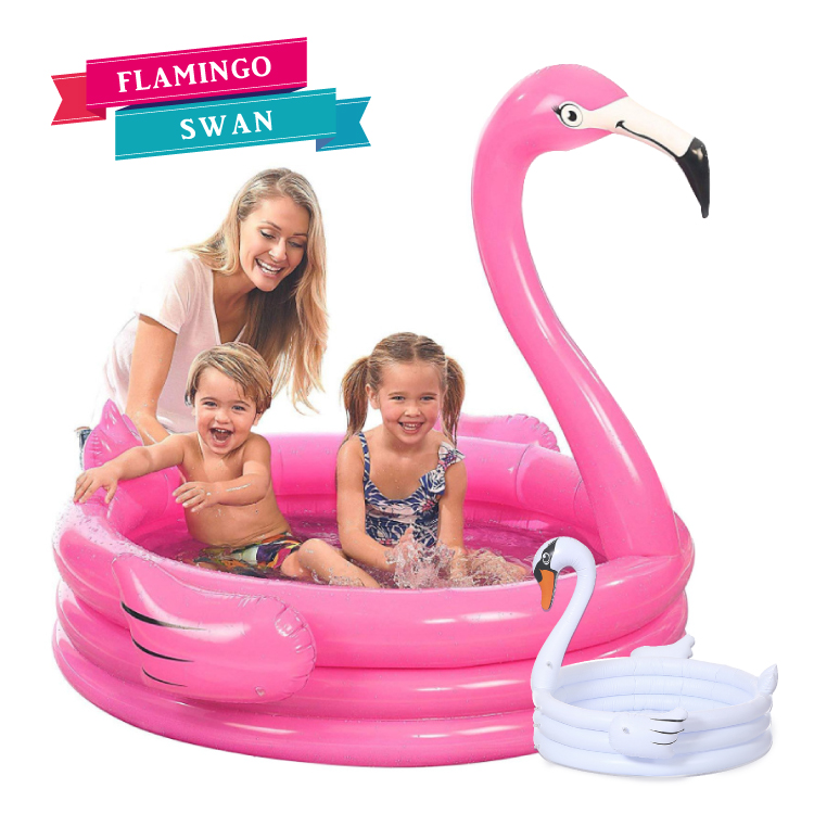 | 商品説明 | 鮮やかピンクのフラミンゴと、青空に映える白いスワンがとっても愛くるしいSNS映え間違いなしデザインの家庭用ビニールプールです★ 乳児から幼児、キッズがお家の庭やベランダで楽しく水遊びができます。 |
