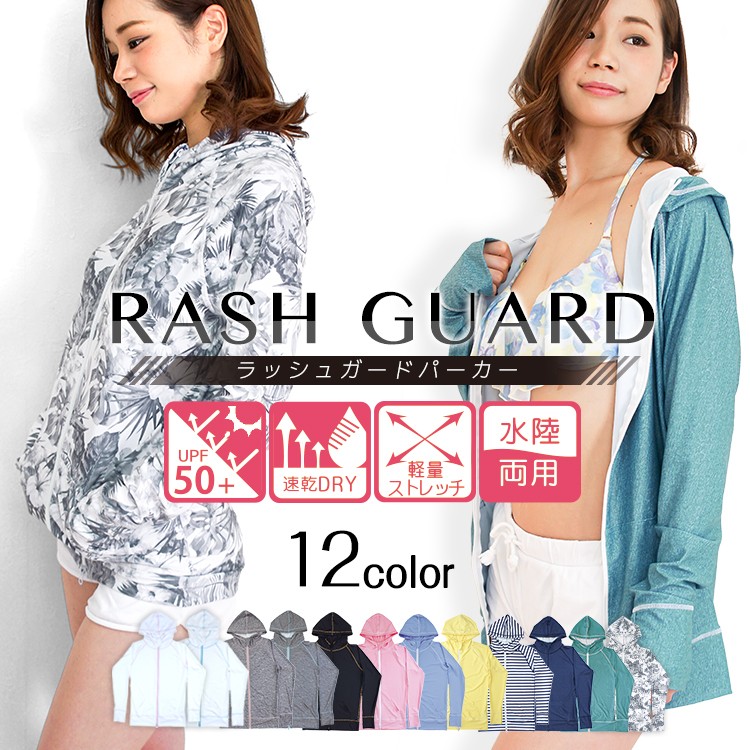ラッシュガード レディース パーカー おしゃれにUV対策 ジップアップ ラッシュパーカー 水着 日焼け止め [ゆうパケット発送]