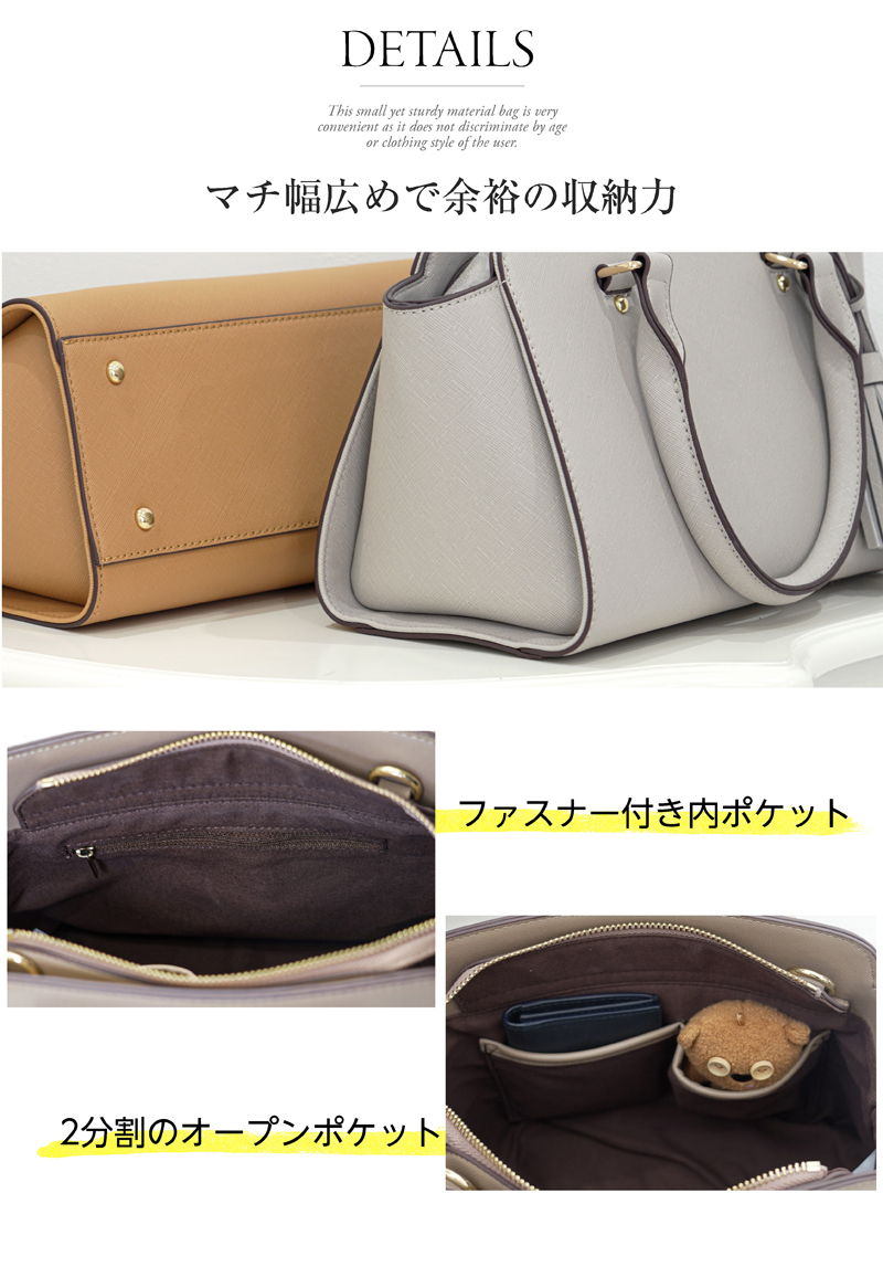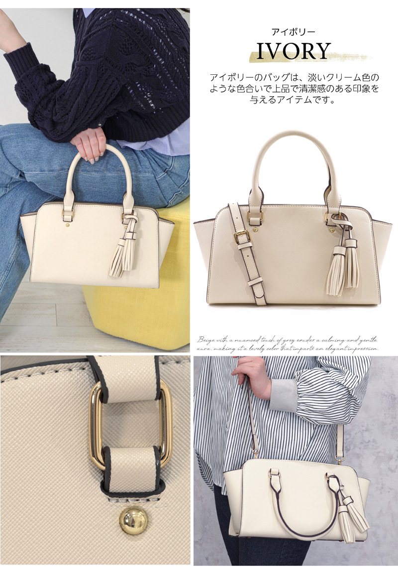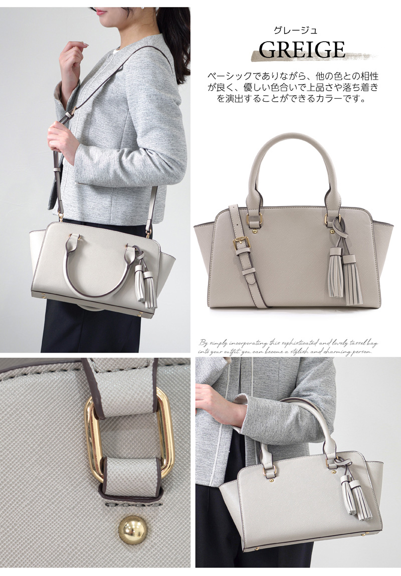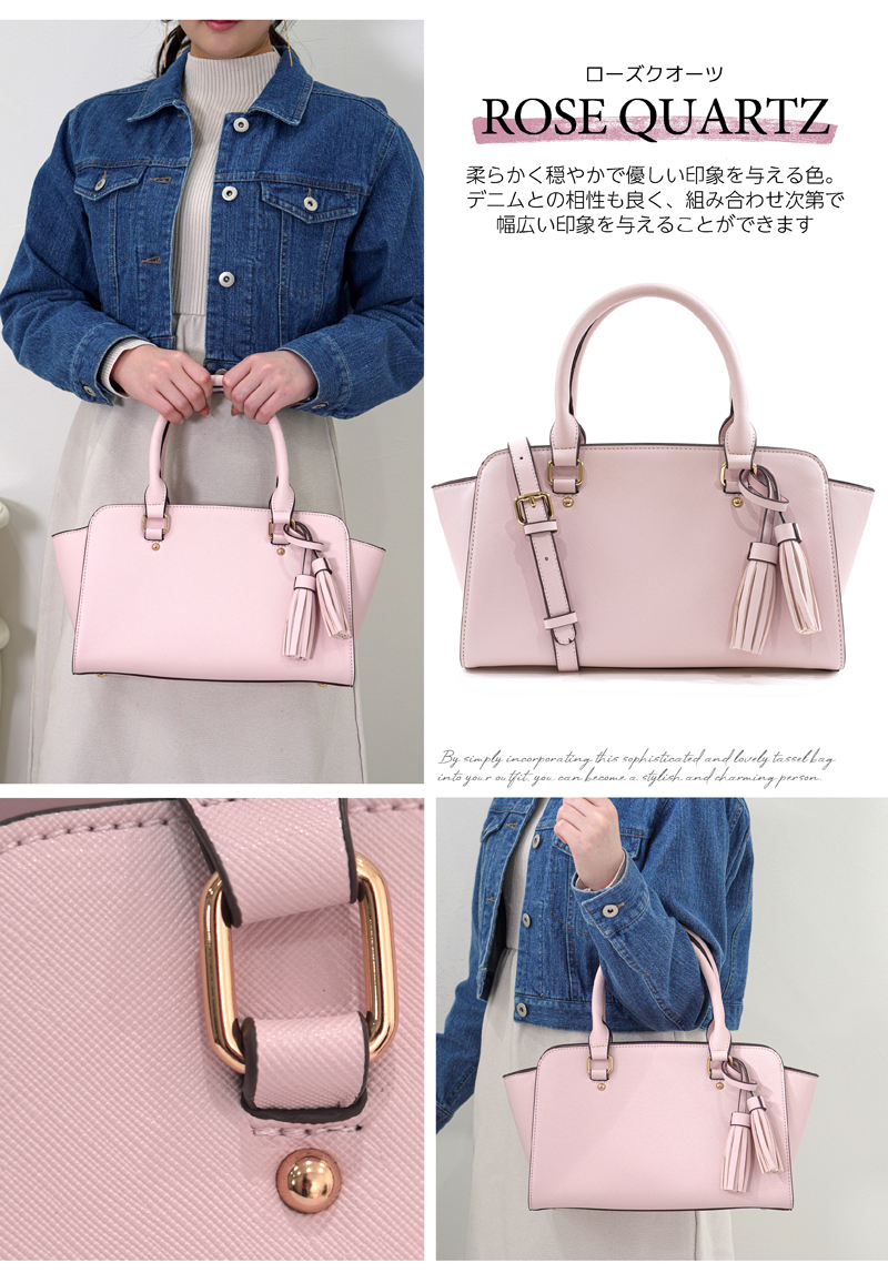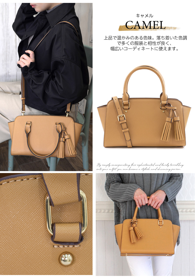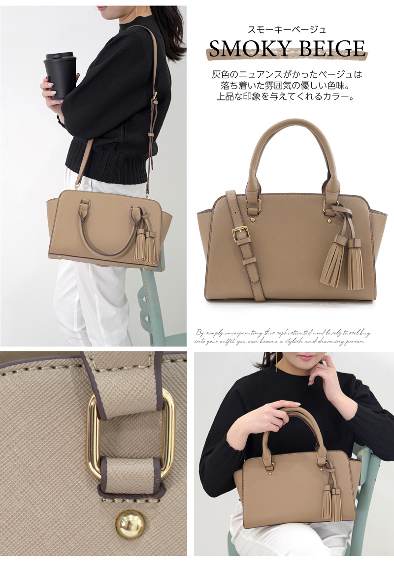しっかりとした素材と細部までこだわった上質な作りで、カジュアルにもフォーマルにも対応できる優秀ミニバッグ。アクセントのタッセルはシーンに合わせて取り外しができます。