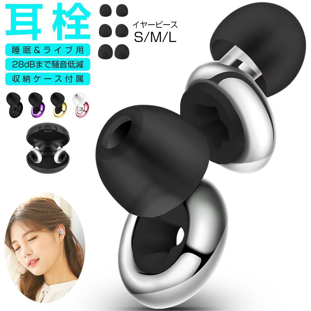 耳栓 睡眠用 イヤープラグ 遮音 みみせん ライブ 28dB低減 収納ケース付き S/M/L イヤーチップ 3セット 防音 ノイズキャンセリング 聴覚過敏 シリコン 水洗い