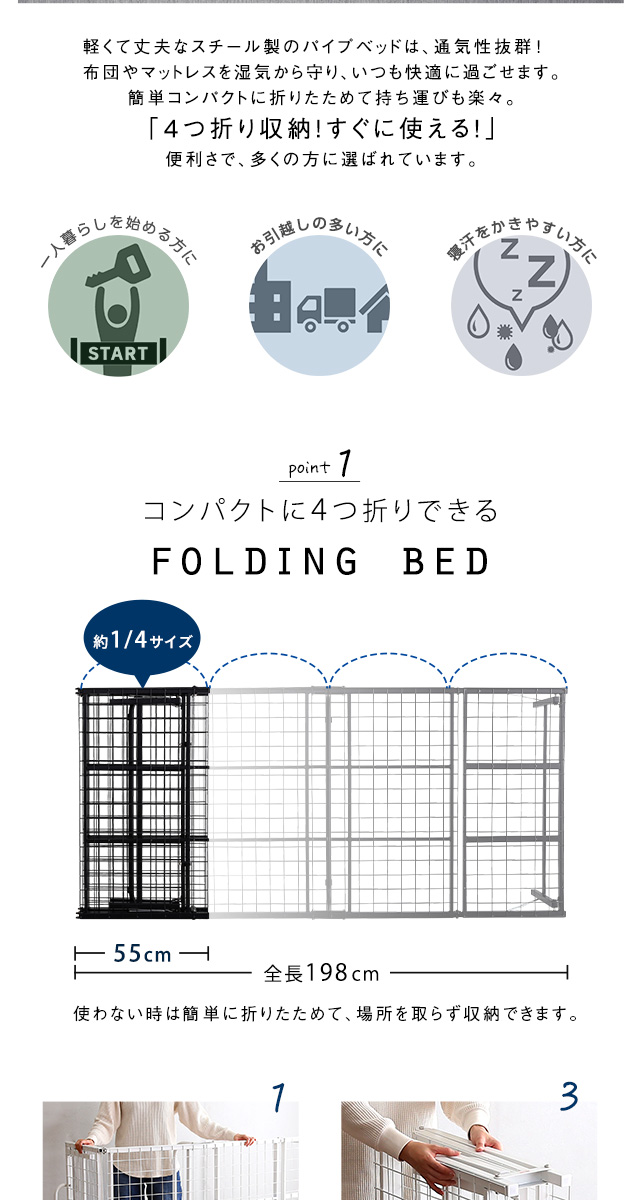 4つ折り 折りたたみパイプベッド!