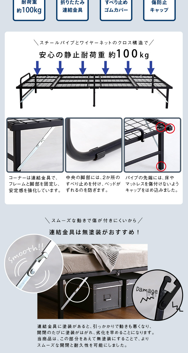 (関連ワード):折りたたみベッド シングルベッド 簡易ベッド 組み立て不要 完成品 折り畳みベッド コンパクト ベット ベッドフレーム 耐荷重100kg 一人暮らし シングル セミダブル ダブル クイーン キング 収納ベッド ローベッド すのこベッド マットレスベッド リクライニングベッド 2段ベッド ロフトベッド 家具 インテリア おしゃれ 新生活 一人暮らし カップル ファミリー