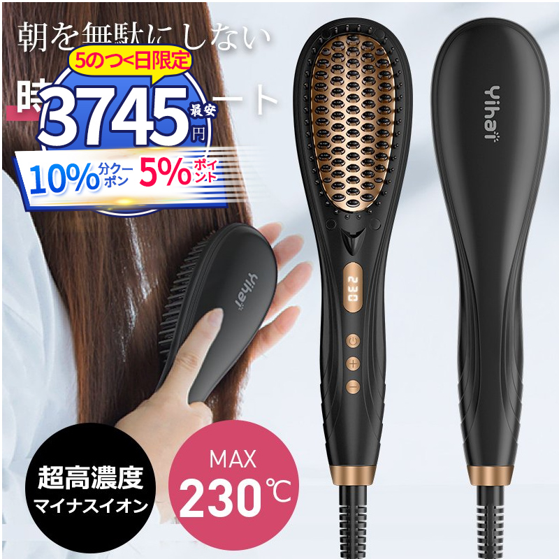 ヘアアイロン ヘアブラシ マイナスイオン ヒートブラッシ ストレートアイロン MAX230℃ ブラシ型ヘアアイロン ヘアアイロンブラシ 新生活 応援