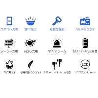 USB充電 2000mAh ソーラー充電 手回し発電 単4乾電池 イヤホンジャック 懐中電灯 災害