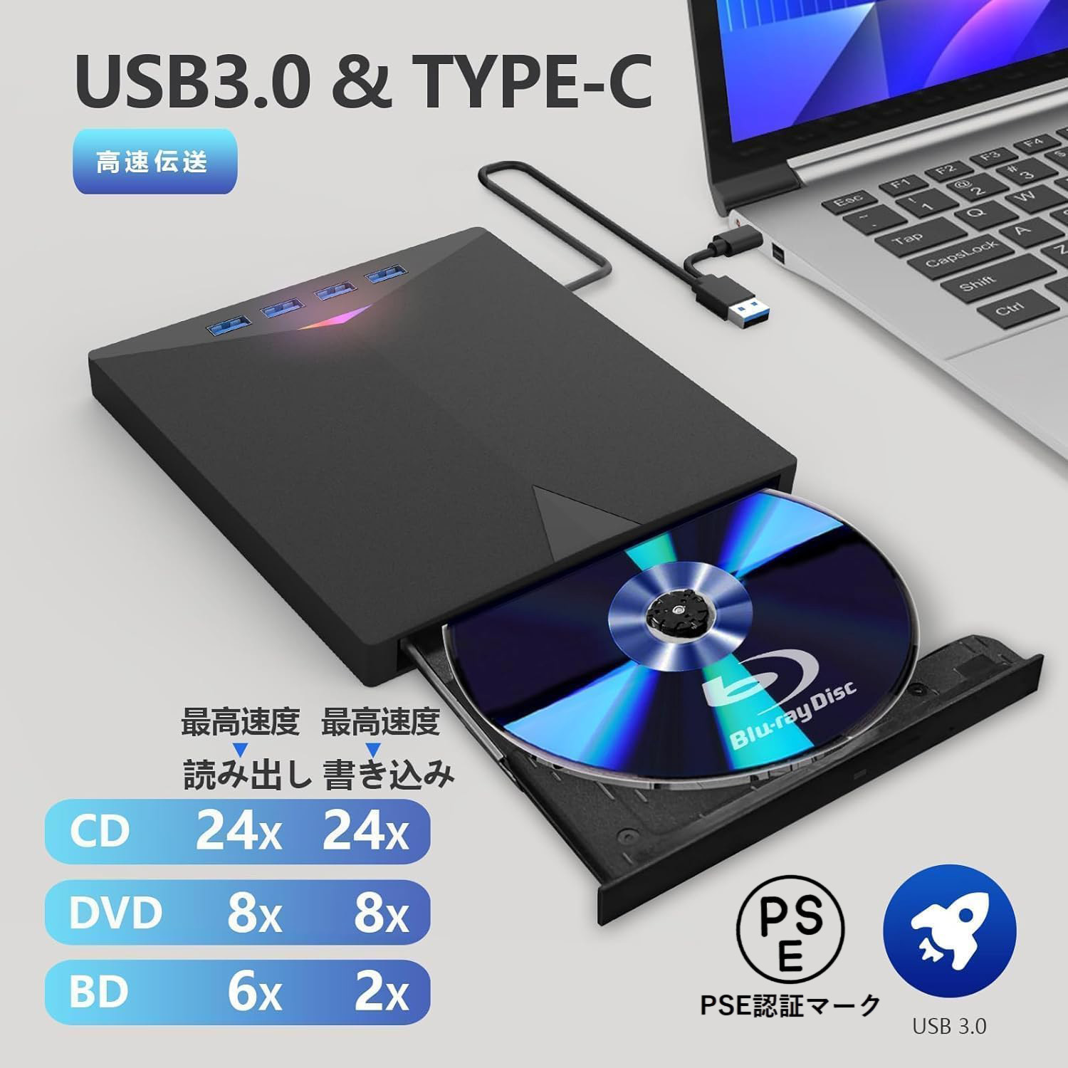 ブルーレイドライブ 外付け Blu-rayプレイヤー再生読み書usb-aと usb-c(type-c) 対応外付け ブルーレイプレーヤー blu-ray 外付けドライブ ブルーレイドライブ