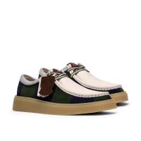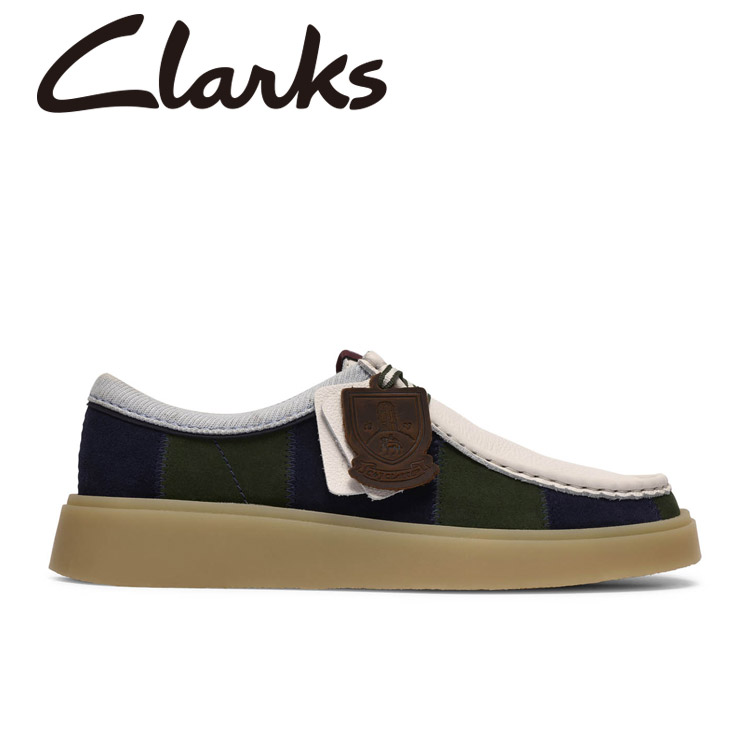 今シーズン、クラークスはアイビーリーグのユニフォームやプレッピースタイルとのつながりを探求し、ワラビーにインスパイアされた人気のトープロファイルを、バーシティストライプやモノグラムプリントで刷新しました。トービューには、私たちの誇りであるサマセットのルーツを象徴する「グラストンベリー・トー」のロゴを、カレッジ風の盾モチーフとして再現した特製ロゴフォブが添えられています。