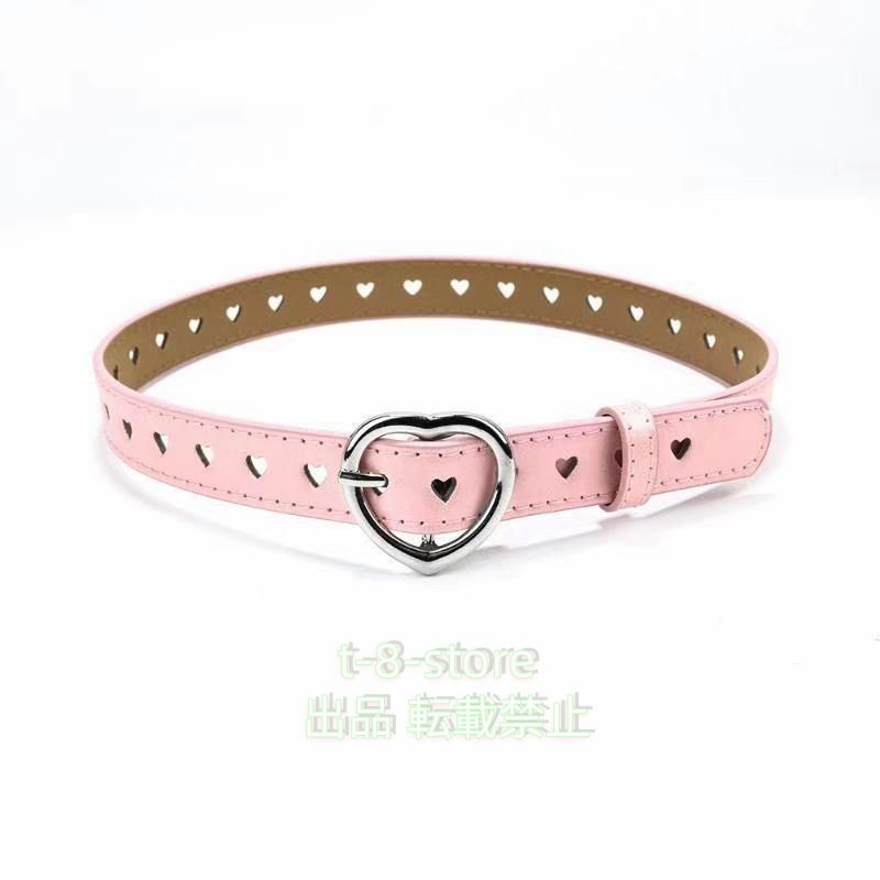 ハート型のバックルやホールが可愛い、子供用のベルト。