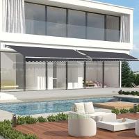 耐水性と耐紫外線性:屋外の手動日よけは、280gのポリエステルとPUコーティング生地でできており、耐水性、耐紫外線性、日焼けに強い、日焼け止めもあります。丈夫で長持ちする折りたたみ式手動日よけ、洗える、耐食性、軽量。