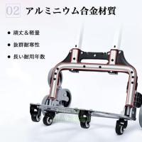 キャリーカートハンドトラック10輪階段三輪折りたたみ軽量段差台車4輪360度回転静音大型タイヤバッグ付け高さ調節固定ロープ付錦荷物運搬業務用