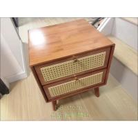 全無垢材ベッドサイドテーブル ナイトテーブル サイドテーブル ラタン純無垢材北欧モダンミニマリスト収納棚スモールオフィス寝室 引き出し付きオーク材 ナチュ