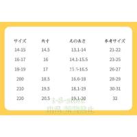サイズ:14-15(内寸14.5cm)、16-17(内寸16cm)、18-19(内寸17cm)、200(内寸18.5cm)、210(内寸19.5cm)、220(内寸20.5cm)