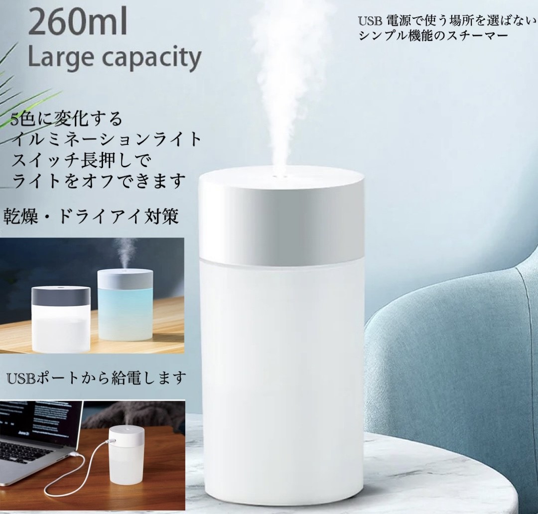 加湿器 卓上 除菌加湿器 ミニ アロマ加湿除菌 超音波式加湿器乾燥 乾燥 花粉症対策 LEDライト 260ML容量 USB充電式 デスク 車用 小型 加湿機 オフィス 寝室