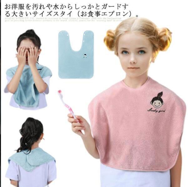 歯磨き時洋服を汚さない 大きめ スタイ キッズ 大判 よだれかけ ロング 小学生 ビブ タオル エプロン 食事 女の子 男の子 洗顔時