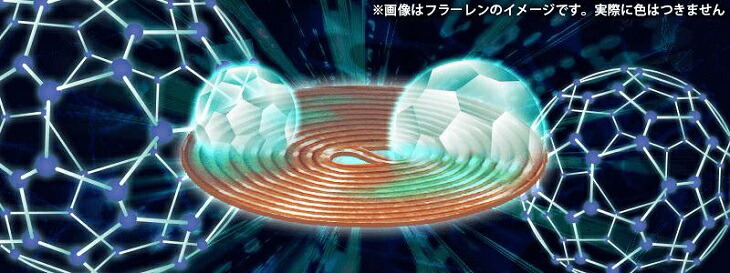 丸山式コイルの効果をより強める為に、銅製コイルにフラーレン加工されたセラミック(以下フラーレン)を追加しました。 フラーレンはバッキーボールと同じ構造をしている為、四次元世界と三次元世界の接点として働くと考えました。 ![]() フラーレンには様々な種類があり、同じフラーレンでも粒子の大きさによって作用が大きく異なります。 厳選したフラーレンを丸山式コイルに用いて『フラーレンコイル』を作りました。 様々なフラーレンを取り寄せ、施策を繰り返し、そこで完成したのが多層丸山式コイルBLACK EYE Gaiusシリーズです。 従来のBLACKE EYEに使用している丸山式コイルを3層にし、フラーレンと組み合わせることで、今まで以上の対電磁波能力を高めることに成功しました。 |