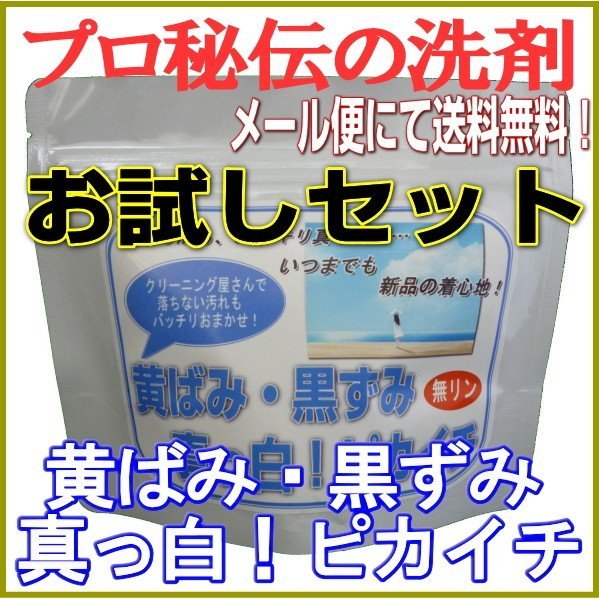 プロ秘伝の洗剤!無リン「黄ばみ・黒ずみ真っ白!ピカイチ」 5回分 お試しセット ◎メール便にて送料無料◎ 爆買