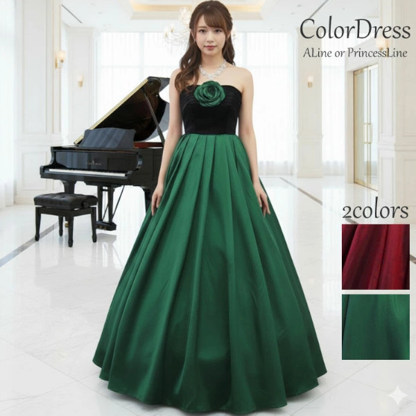 カラードレス 赤 緑 黒 演奏会ドレス クリスマスパーティ 大人ドレス Aライン 発表会 舞台ステージ衣装 cd31608