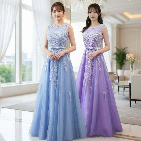 在庫処分 カラードレス ラベンダー 水色 脇下刺繍なし 演奏会ドレス 背中ファスナー ロングドレス 舞台衣装 20代30代40代50代 Bタイプ cd71432