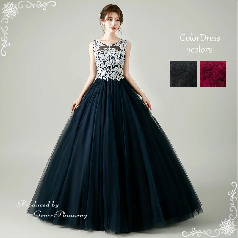 カラードレス 黒 赤 青 演奏会ドレス 背中ファスナー 発表会ドレス ロングドレス 結婚式 花嫁ドレス 前撮り 即日発送 SML cd80066