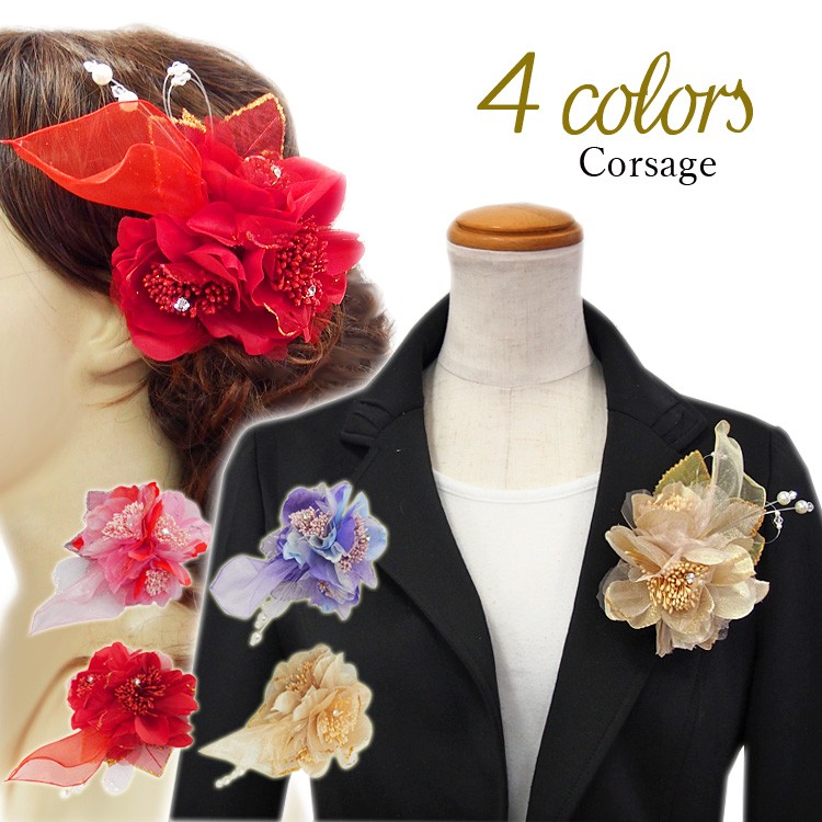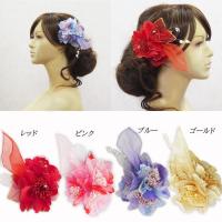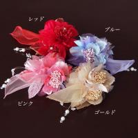 ウェディングヘッドドレス コサージュ 髪飾り (全4色/ピンク 赤 青 金) 結婚式 フォーマル ヘアアクセサリー 入園式 入学式 卒園式 卒業式 cs2077