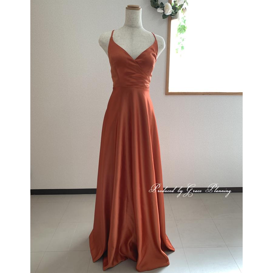 在庫処分 カラードレス 結婚式 ウェディングドレス テラコッタ バックリボン付き スレンダー 背中ファスナー 前撮り二次会 パーティードレス gcd7111