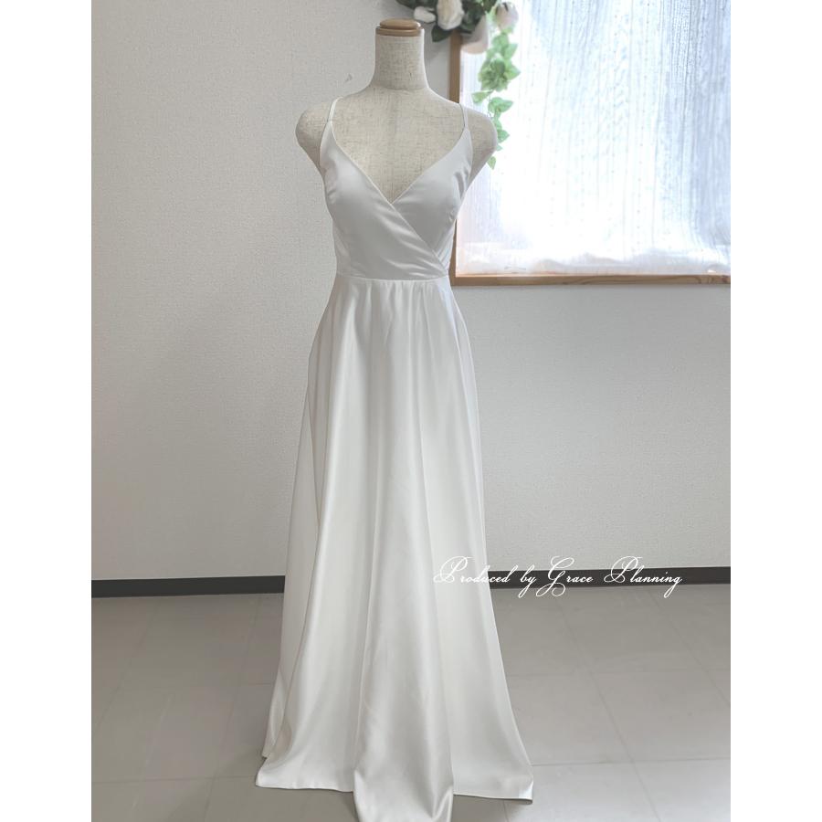 細いストラップが背中でクロスして、バックスタイルも綺麗に見せます。