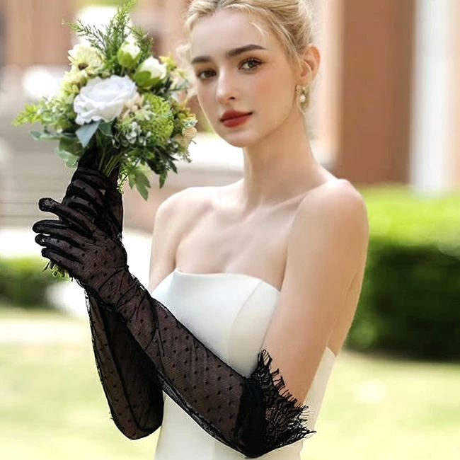 新商品 ウエディンググローブ 黒 ブラック レースグローブ カラーグローブ ロンググローブ フリーサイズ 肘上丈 レディース手袋 gl309