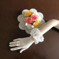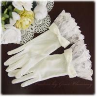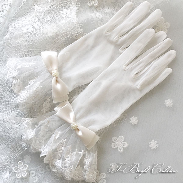 手首のリボンがポイント レースがきれいなウェディンググローブ
