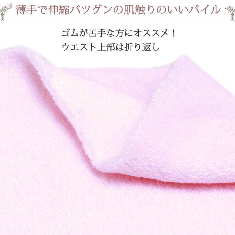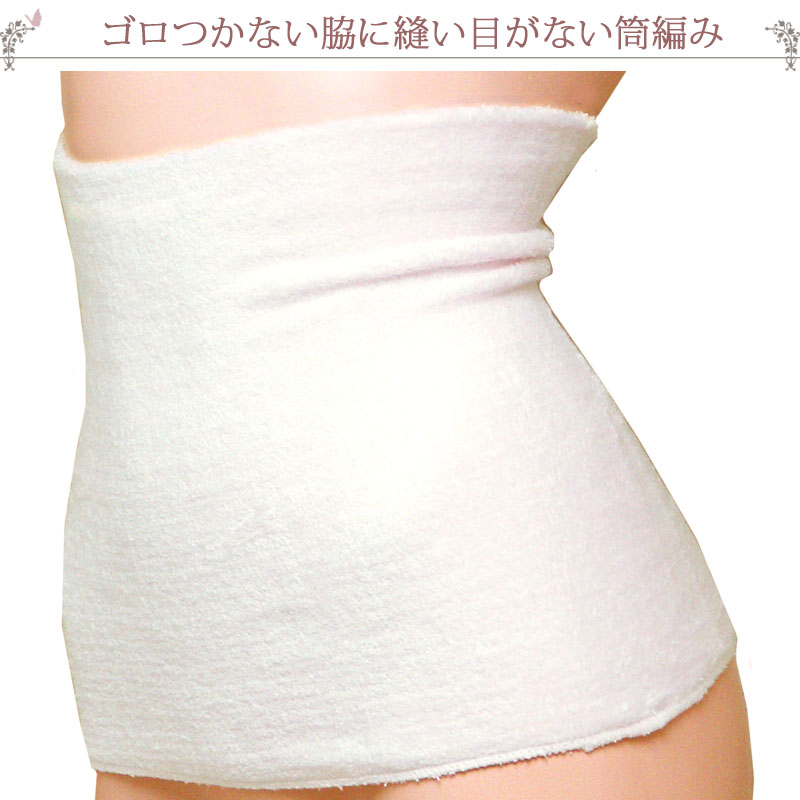 ウエストゴムが苦手だったり、縫い目に肌が負けてしまうなど、お肌の弱い方に、のびのびタオル地パイルの 腹巻 です。締め付け が苦手な女性に、冷えを防ぎたい 生理 や 妊活、としてオススメしたい オールシーズン 腹巻 です。