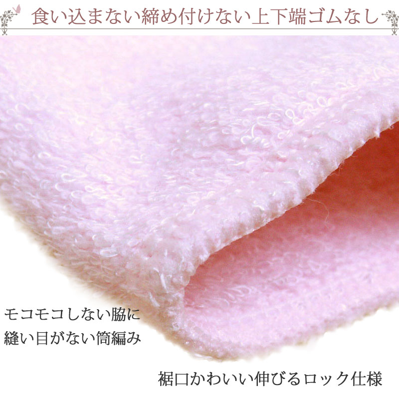 筒状に編まれた生地を使用。脇の接ぎもなく少しでも縫い目からのストレスを軽減します。デリケートなお腹部分は少しの縫い目でもゴロゴロすると気持ち悪いですものね。