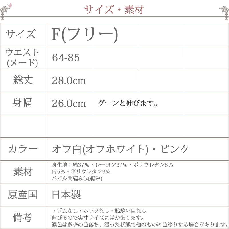 | サイズ | Fフリーサイズ( サイズの測り方はこちら) とてもよく伸びるので 商品により実寸サイズに多少の差があります。 |