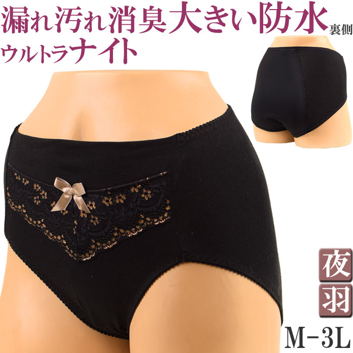 生理用ショーツ 羽根つき 多い日 ナイト用 防水布 はヒップからウエストまで 生理 漏れ ない パンツ です。