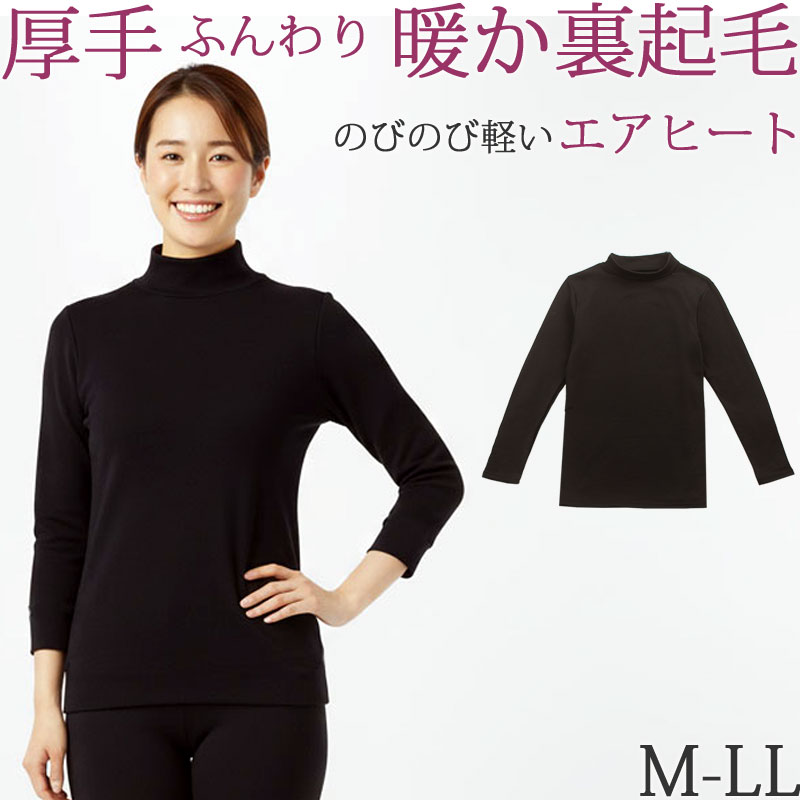 おしり 冷え 防寒 対策に空気をいっぱい含んだ 汗冷えしない軽くてふわふわ 厚手 の 暖かい 裏起毛 インナー 冬 の 防寒 レディースインナー。体にフィットしてくれるのでシャツの下に着てもゴワつく感じがありません。